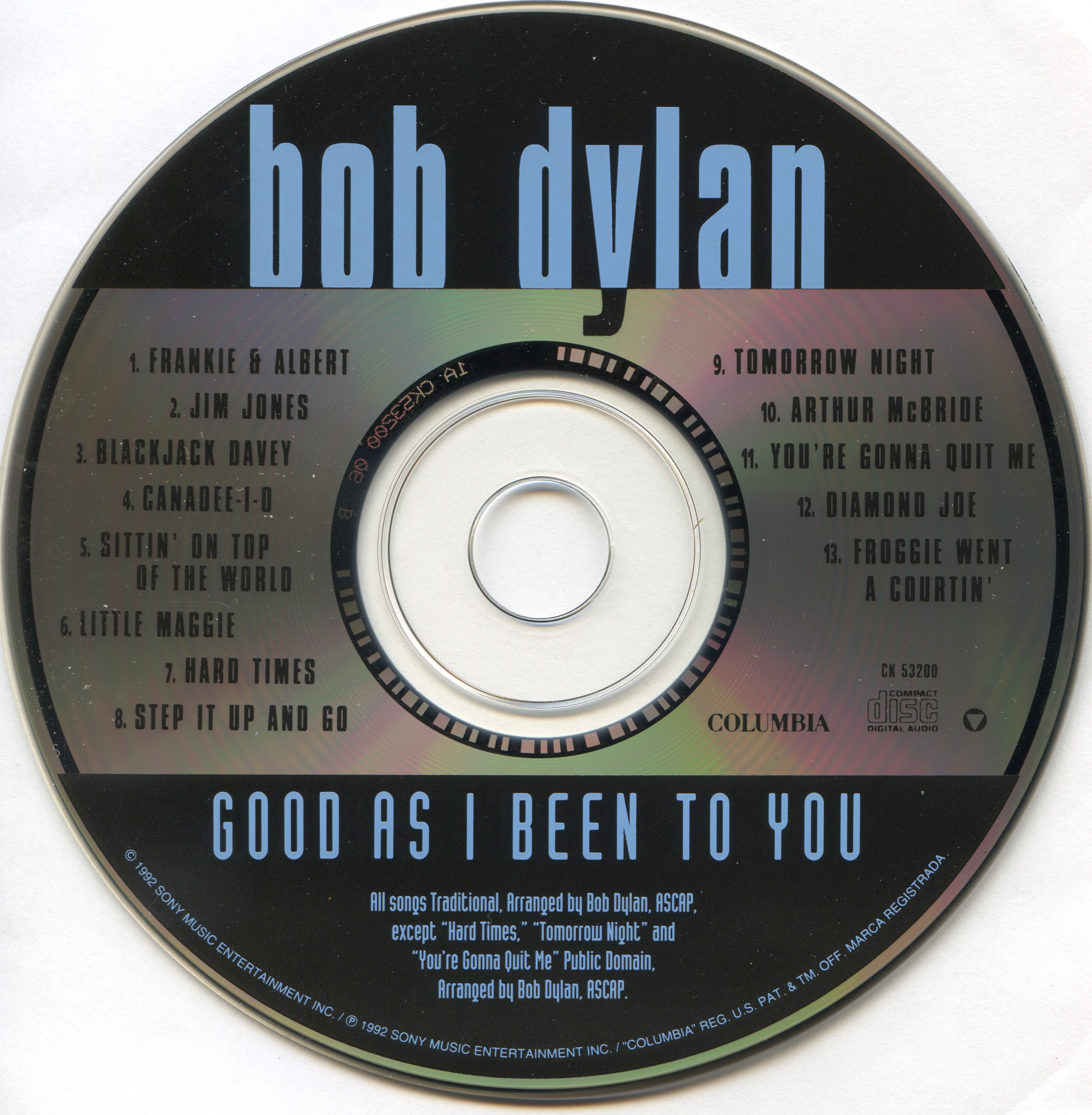 Index of /webroot/Music/Dylan, Bob/Bob Dylan [1992] Good As I Been to You/Scans 1992 Columbia CK 53200, USA