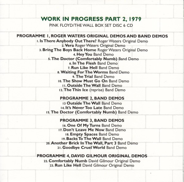 Index of /webroot/Music/Pink Floyd (bootlegs, covers, remixes, tributes)/_Immersion/The Wall (Immersion Box Set)/Disc 6